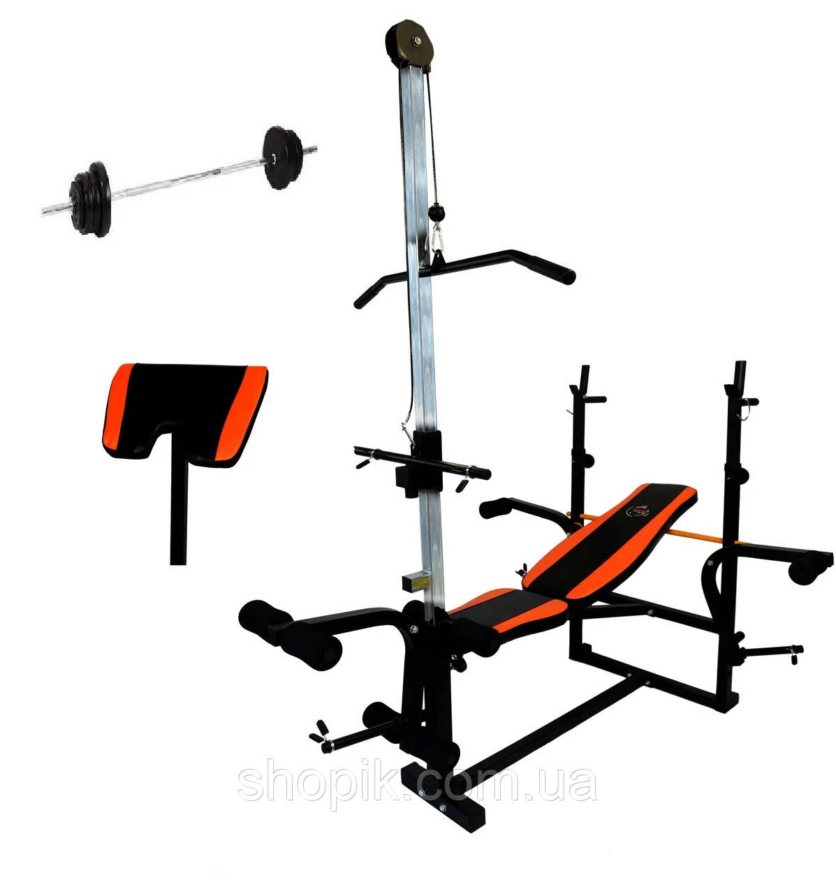 Лава тренувальна WCG 0070 + Тяга , скотта + штанга 50 кг, Лавка спортивна зі штангою 50 кг SHOPIK