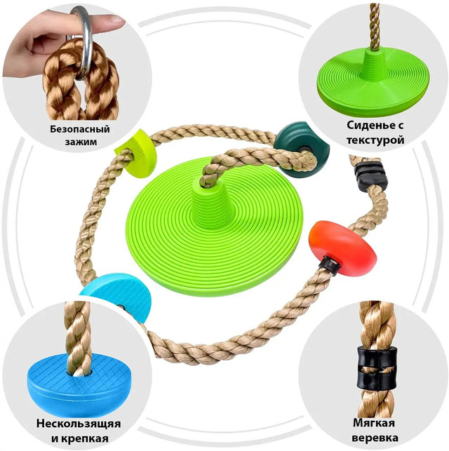 Аксесуари в наборі — дискова гойдалка, платформи для лазіння, мотузка для лазіння.