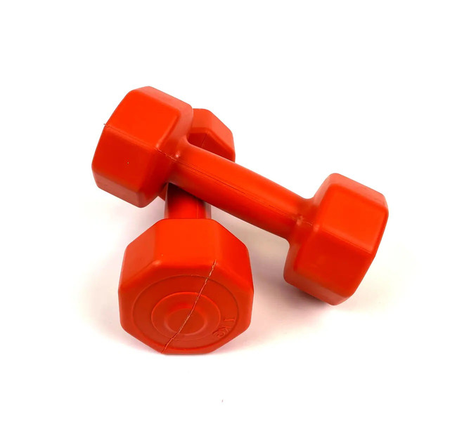 Композитні гантелі з пластиковим покриттям загальною вагою 2 кг. прекрасно підходять як для домашнього використання, так і для фітнес-залів. Комплект гантелей 2 шт. по 1 кг прекрасно підходять для занять спортом, допомагають наростити м'язи рук, грудей, спини та ніг, залежно від виконання вправ. Матеріал — композит. Колір оранжевий.