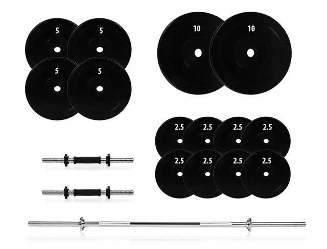 Пропонуємо Вам набір штанга + гантелі загальною вагою 72 кг