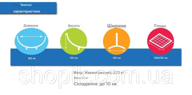 | Габаритні розміри гамака | |