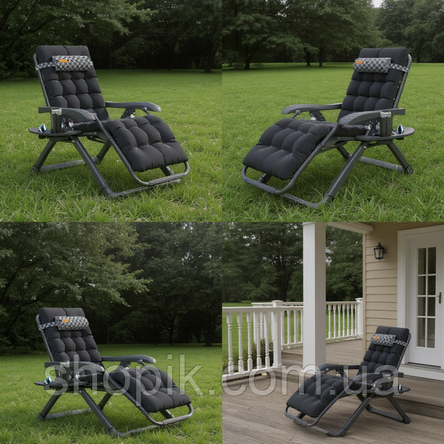 Розкладне крісло шезлонг домашній з подушкою і матрацом Zero Gravity WCG S14-PP Louis з шаховим полотном + чорний матрац розкладачка лежак для відпочинку в саду на природі зі сталевим каркасом