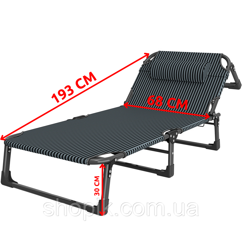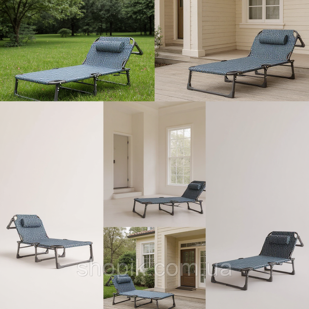 Розкладне ліжко шезлонг домашній з подушкою WCG FB-S02 зі смугастим полотном 600D Oxford + подушка Чорний розкладачка лежак